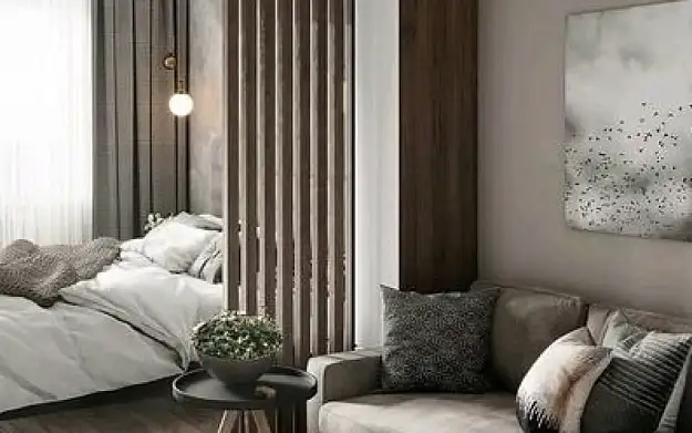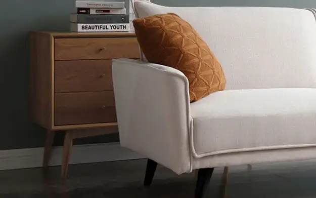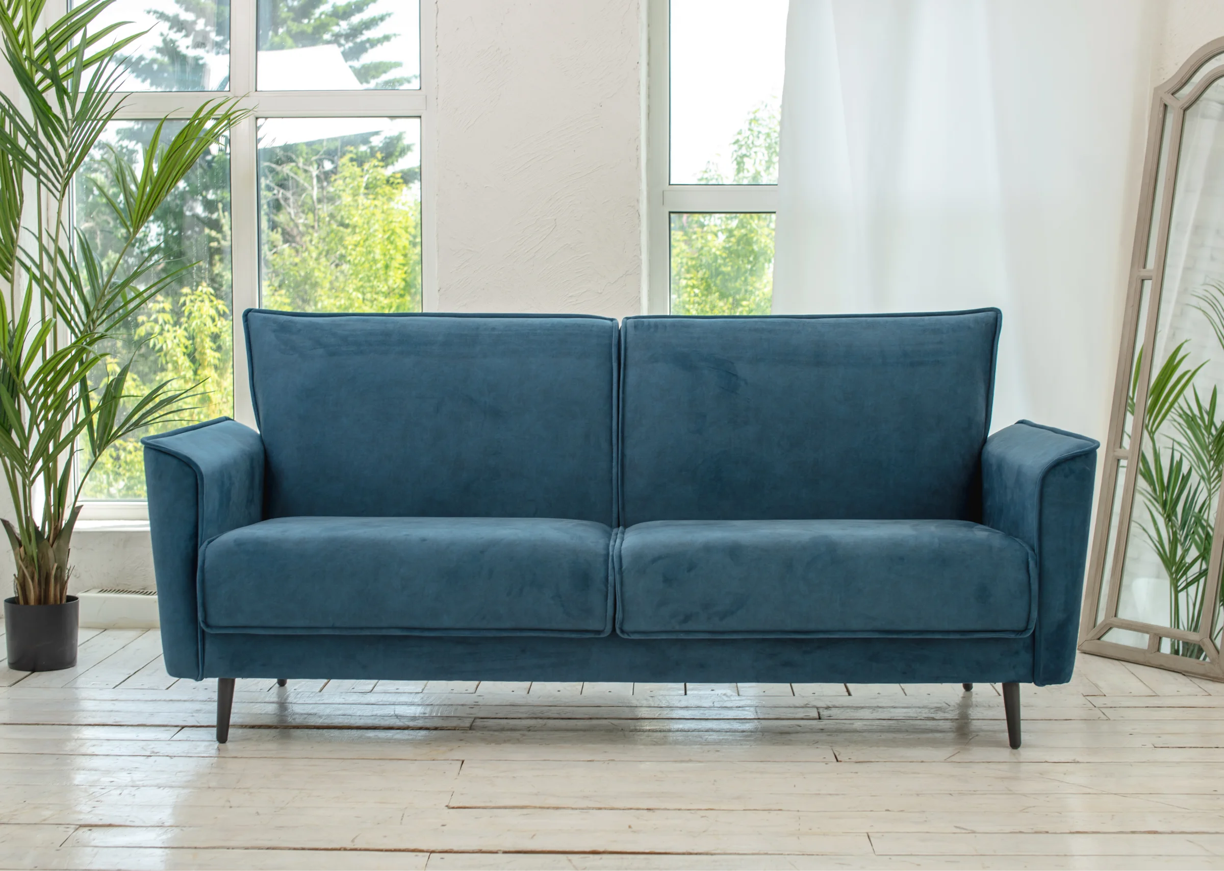 Диван полностью из мебельной ткани можно использовать для зонирования пространства в гостиной, кухне-студии.