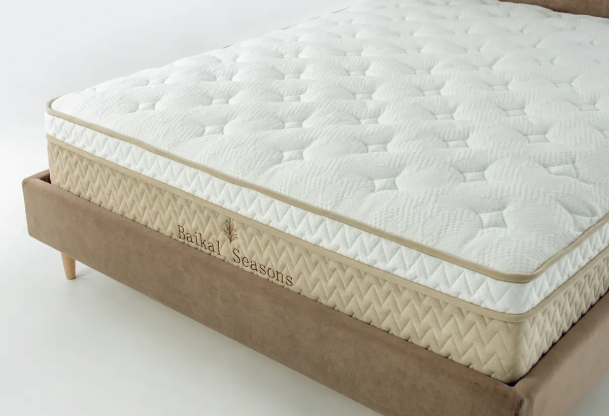 Особенности серии матрасов Baikal SeasonВдохновитесь атмосферой золотой осени на Байкале с матрасом Baikal Season Осень – идеальным сочетанием ортопедической поддержки и мягкого комфорта. Этот матрас создан для тех, кто ценит баланс между жесткостью и нежностью, как переход от теплого лета к прохладной осени. Дизайн и эстетика Серия Baikal Season – это дань величию Байкала, воплощенная в дизайне. Неоклассические мотивы, переплетающиеся с природными элементами – тайгой, горными силуэтами и отпечатками кедровых ветвей – создают уникальную атмосферу в вашей спальне. Чехол из дизайнерского трикотажа с технологией Cloud и ткани жаккард подчеркивает изысканность и натуральность коллекции.